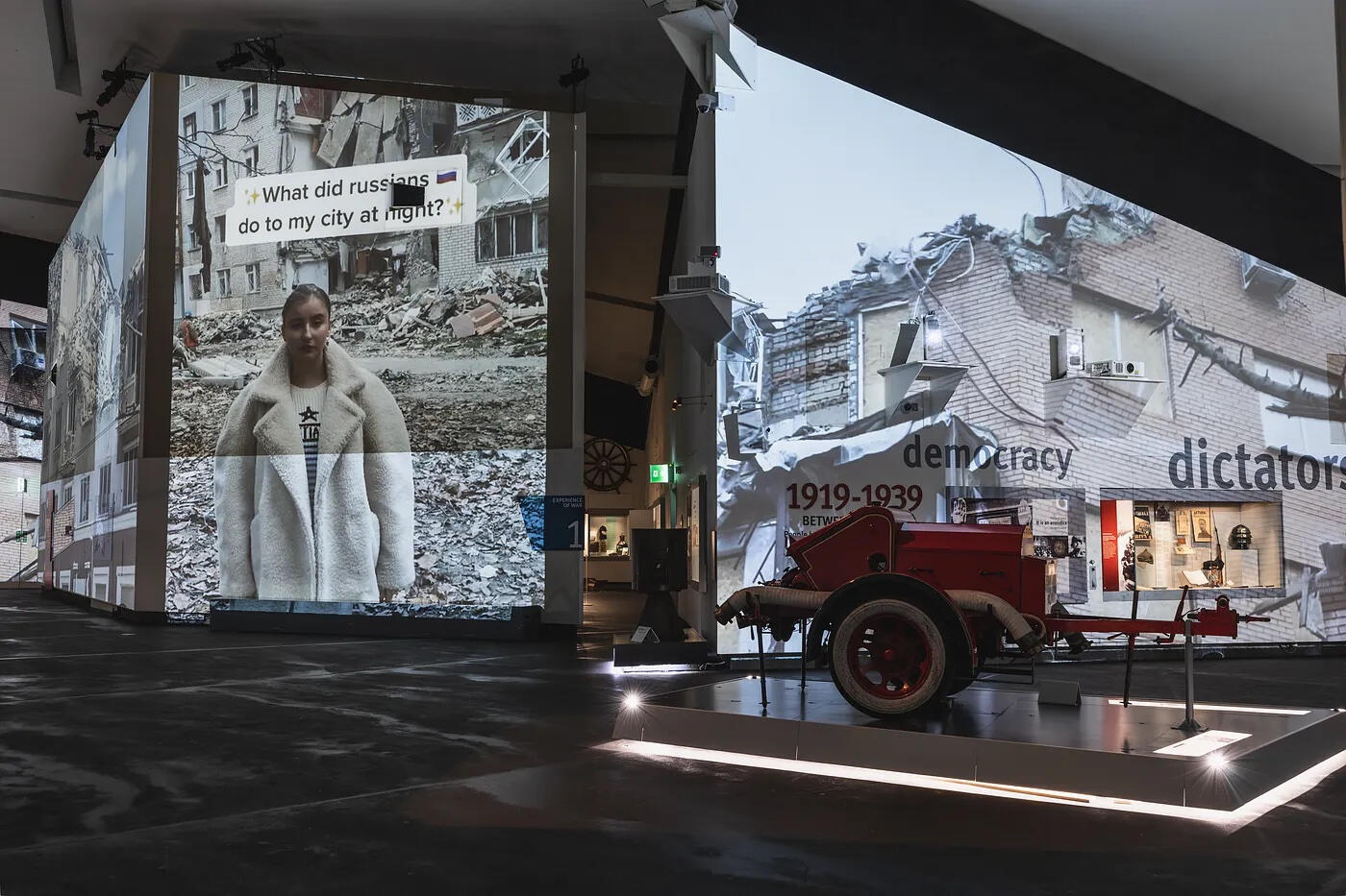 This is a museum installation at the Imperial War Museum in Manchester, UK, which I conceived and was created as a partnership between Freeda and IWM.Every day, for a few minutes, the entire museum goes dark and TikTok and Instagram videos are projected on every surface in the space. This is a peek into ordinary life in extraordinarily challenging times, as told through the voices and videos of 15 young Ukrainians.